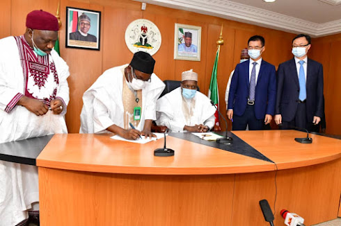 Secretary to the State Government, Professor Ibrahim Abubakar Njodi signed the MoU on behalf of Gombe state Government with Commissioner of Justice and Attorney General, Zubair Muhammad Umar signing as a witness, while Mr. Chang Weijiun and Mr. Qin signed for TBEA and CR 18 group respectively.